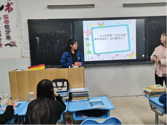 在寫(xiě)完煩惱之后,史老師讓學(xué)會(huì)們談?wù)劥笕诵稳菟麄兊纳?/font>“無(wú)憂無(wú)慮”。學(xué)生們紛紛發(fā)表自己的觀點(diǎn),有些學(xué)生認(rèn)為上學(xué)并不是無(wú)憂無(wú)慮,也有很多煩惱,跟同學(xué)之間如何相處,跟老師之間如何相處,在課堂中能否真正學(xué)到知識(shí)都可以成為煩惱,這些煩惱雖然看起來(lái)并不起眼但是對(duì)于他們來(lái)說(shuō)也會(huì)影響每天的狀態(tài)和心情。導(dǎo)致自己沒(méi)有心情學(xué)習(xí),校園生活愈加壓抑。