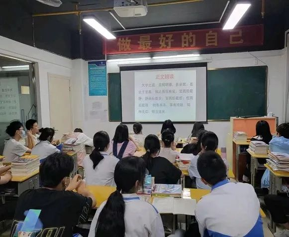 博觀而約取,厚積而薄發(fā)。在活動(dòng)期間,教師利用課前時(shí)間,在班級進(jìn)行國學(xué)經(jīng)典、愛國詩歌誦讀以及學(xué)科知識、優(yōu)秀人物故事分享,齊讀名人名言。由教師或班干部帶領(lǐng),做到“讀而常吟之”,“學(xué)而時(shí)習(xí)之”。經(jīng)典誦讀活動(dòng)的開展,把朗誦融入每一天,讓誦讀成為學(xué)生生活的一種習(xí)慣,一個(gè)愛好,使學(xué)生能夠在誦讀中品味,在品味中傳承,營造濃濃的書香校園氛圍。