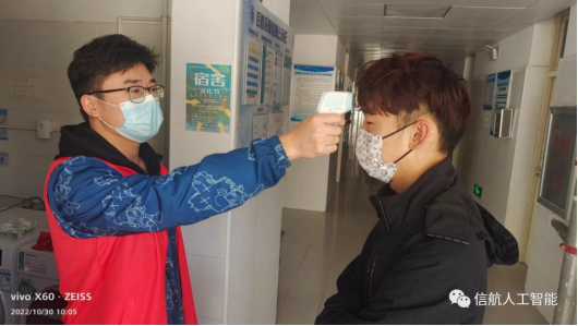 人工智能學(xué)院積極參加防疫工作,安排志愿者在宿舍門口和學(xué)校的大門口值班,每天都有值班人員,對于進出人員測量體溫,登記信息等。