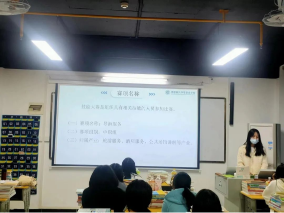 電子商務(wù)專業(yè)優(yōu)秀教師李潔老師和姚奇老師默契配合,在講臺上激情宣講,同學(xué)們認(rèn)真傾聽,對技能大賽充滿了無限期望;除此之外還有導(dǎo)游和動畫技能大賽,由潘虹彤、吳思、沈伊洋、鄭恒老師指導(dǎo)。