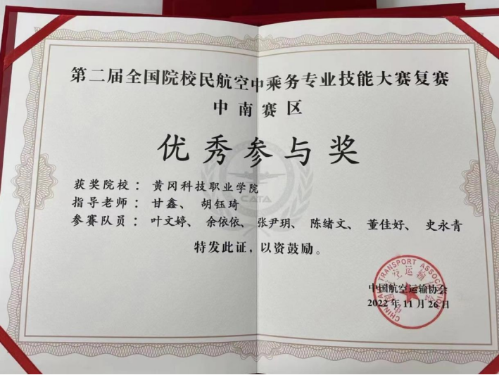 11月26日,第二屆全國院校民航空中乘務專業(yè)技能大賽中南區(qū)復賽在滁州·華東航空實訓基地圓滿落幕,因疫情原因,黃岡科技職業(yè)學院校區(qū)旅游與航空服務學院民航空中乘務專業(yè)的學生未能線下參加,只能通過有限的條件參加線上比拼,最終獲得優(yōu)秀獎。