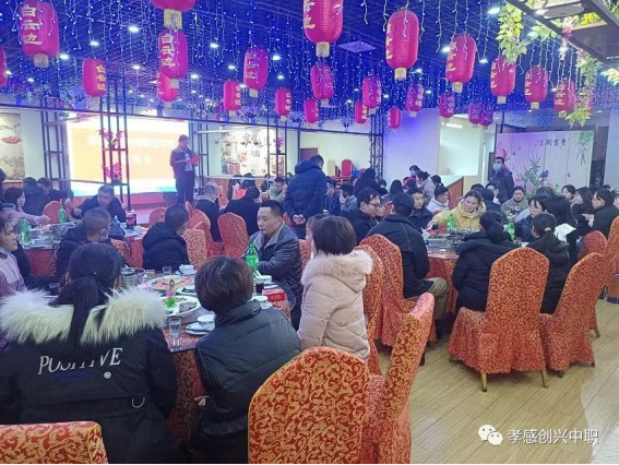 大會(huì)結(jié)束后,全體教職工前往“一家人酒店”參加團(tuán)拜會(huì)、共進(jìn)晚宴。團(tuán)拜會(huì)上董事長(zhǎng)劉恩地發(fā)表了熱情洋溢的敬酒詞,校長(zhǎng)向漢平宣布晚宴開始。集團(tuán)董事長(zhǎng)劉恩地、執(zhí)行總監(jiān)孔健、董事劉園地為全體教職工派發(fā)年終獎(jiǎng)紅包。